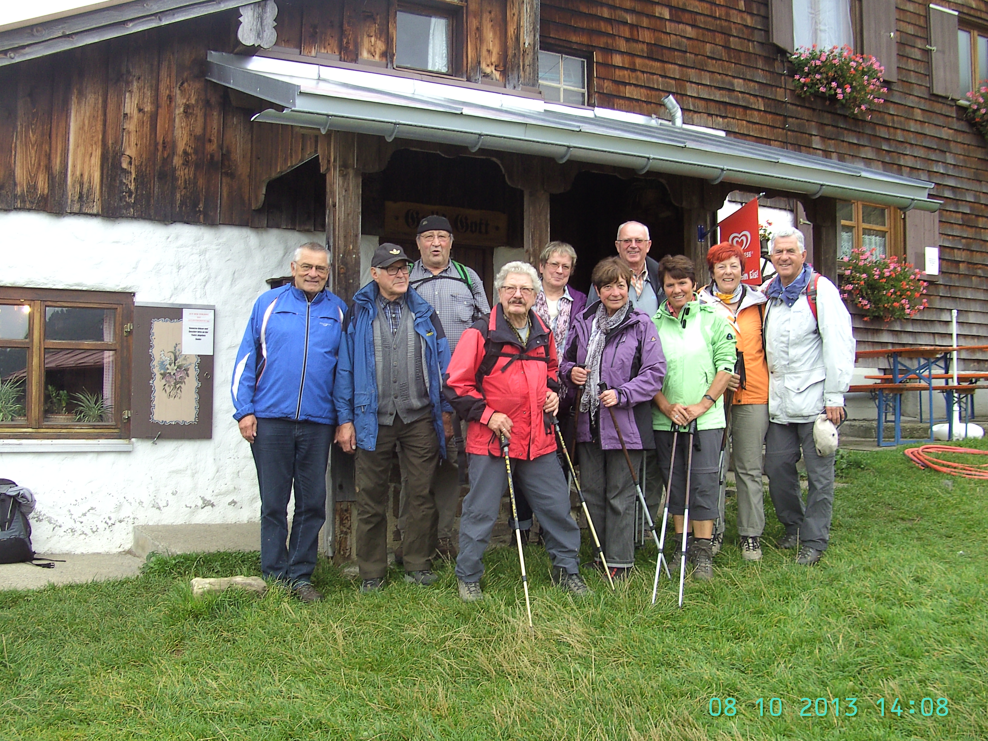 Wandergruppe des Jahrgang 44/45 auf dem Alperlebnispfad am Imberg bei Steibis.