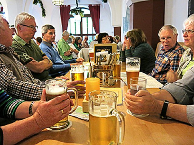 Dann die Fuggerei. Imposant diese älteste Sozialsiedlung der Welt. Jakob Fugger der Reiche stiftete 1521 diese Wohnsiedlung für bedürftige Augsburger Bürger. Und so leben heute noch, entsprechend dem Stiftungszweck, bei einer Jahreskaltmiete von aktuell 0,88 Euro in den 67 Häusern 150 Menschen. Die eingehende Besichtigung einzelner Häuser und deren Räume, mit der Erklärung von verschiedenen Fuggerei-Details, hinterließ bei den Teilnehmern einen bleibenden Eindruck. Weiter ging es dann an prächtigen, ja mächtigen Fuggerhäusern vorbei zur Mittagseinkehr in die Zeughaus-Stuben. Frisch gestärkt galt am Nachmittag die Aufmerksamkeit verschiedenen Kirchen im Innenstadtbereich. Ein kurzweiliger Stadtbummel beendete den erlebnisreichen Tag in der Fuggerstadt Augsburg.