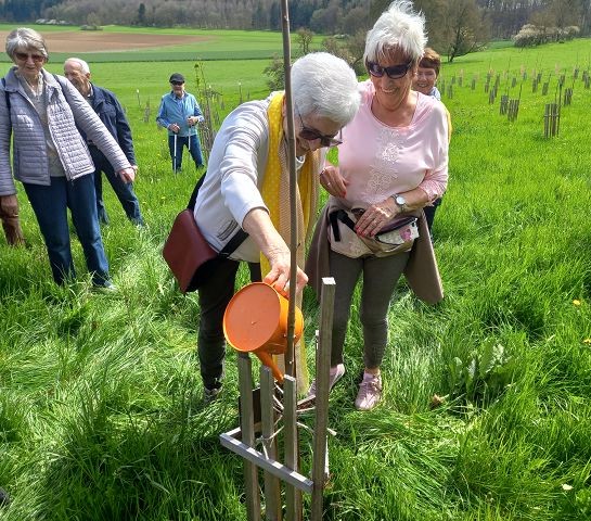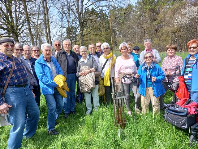 Bei bestem Frühlingswetter startete eine große Gruppe des Jahrgangs 44/45 vom Naturfreundehaus „Hasenloch“ Richtung „Bürgerwäldle“. Man war auf der Suche nach dem vom Jahrgang an Pfingsten 2022 gespendeten Baum. Sehr schnell war dieser Baum mit der Nr. 01.09.14 entdeckt. Erfreut konnte man die ersten Knospen feststellen und hatte somit ein guten Eindruck von dem „Bäumle“. Nur einig war man sich nicht über welche Art von Baum es sich handelt. Erst nachdem alle Laubgehölze durchdiskutiert waren, vertraute man dem Urteil des sehr erfahrenen Hans-Peter: Es ist eine Esche! Mit dem mitgebrachten Wasser aus der Brenz wurde die „Baumtaufe“ vorgenommen. Beim 80-er Fest will man sich hier wieder treffen, denn wie heißt es: Freundschaft ist wie ein Baum. Es zählt nicht wie hoch er ist, sondern wie tief die Wurzeln sind. Der gemütliche Ausklang fand bei bester Bewirtung im Naturfreundehaus „Hasenloch“ statt