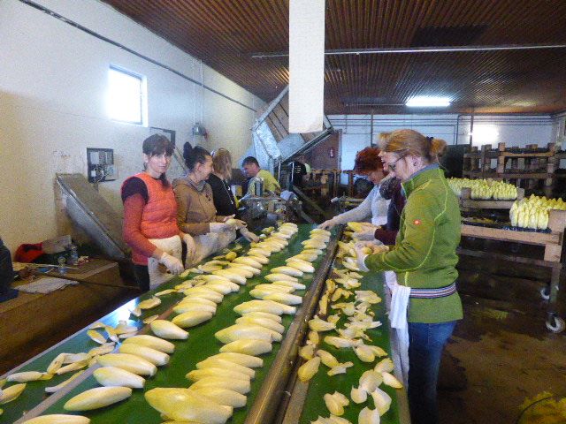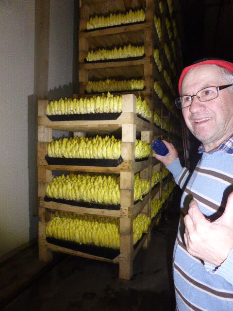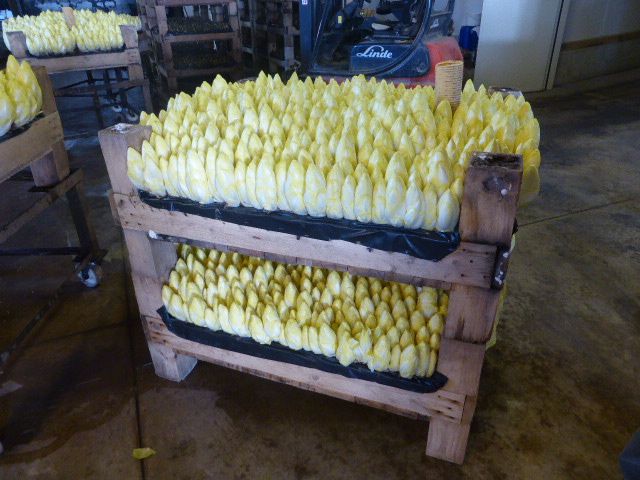 Seit 22 Jahren befasst sich der Gemüseanbauer mit dem Anbau von Chicorée. Die Besonderheit dabei ist, dass diese Pflanze in Kisten und nur bei völliger Dunkelheit wächst. Um dabei erfolgreich zu sein, braucht man dazu viel Erfahrung, Geduld und Fingerspitzengefühl. Denn durch eine ständige Überwachung ist darauf zu achten, dass das sogenannte „Herzblatt“ dran bleibt –„ohne das würde nichts wachsen“. Nach rund 21 Tagen ist der Chicorée knallgelb und kann geerntet, kontrolliert und verpackt werden. Und was wünscht sich der Gemüseanbauer Wöller: Dass immer mehr Deutsche die Vorteile dieses Gemüses erkennen, denn nur 250 Gramm Chicorée isst jeder Deutsche jährlich im Durchschnitt.