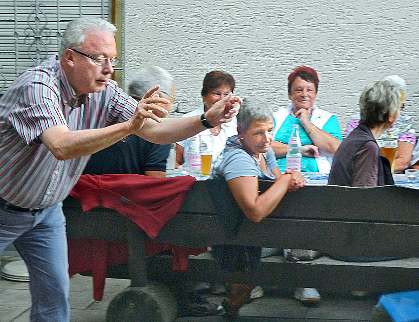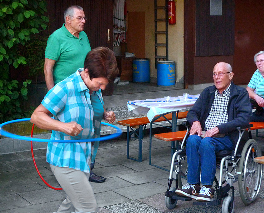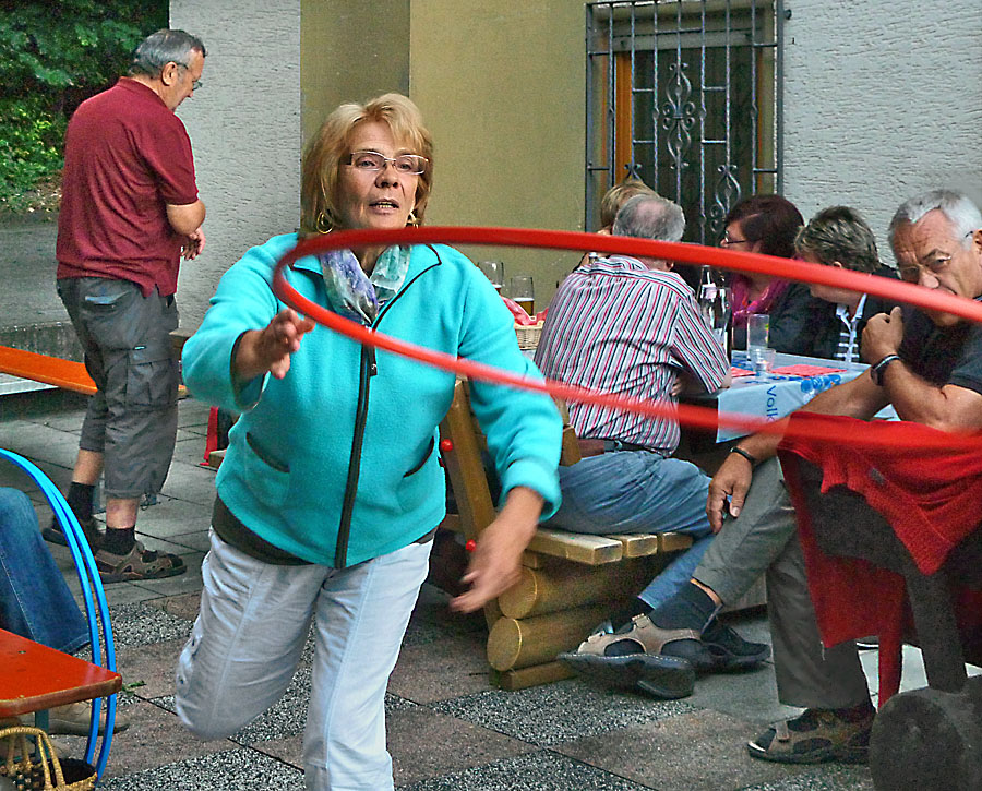Doch wer es sich an einem solchen Abend gut gehen lässt, muss sich auch bewegen. So war das Zielwerfen mit Reifen eine gelungene Abwechslung.