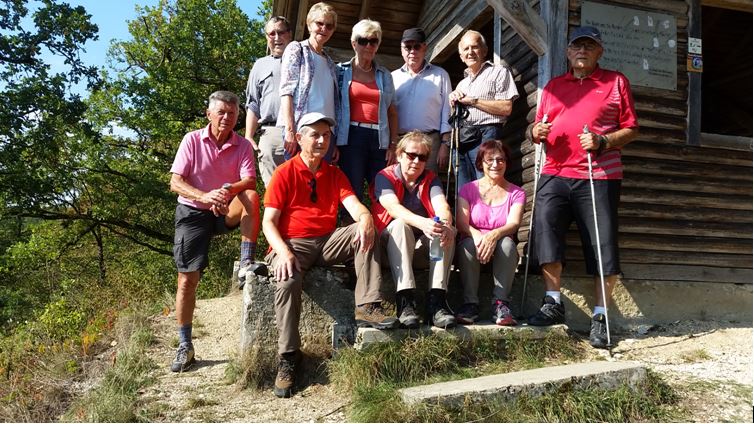 Auf einem interessanten Rundweg führten Heide und Hans-Peter Gebhardt die Wandergruppe des Jahrgangs 44/45. Von Lindenau aus ging es an einem Baumlehrpfad entlang Richtung Aussichtsplattform oberhalb der Bocksteinhöhle. Dieser erste Teil der Wanderung mit den verschiedensten Baumarten, unter anderem ein prächtiger Mammutbaum, war für die Teilnehmer lehrreich und so mancher Tipp: „Was ist das für ein Baum“, lag daneben. Dann hatten Heide und Hans-Peter, wie dies bei ihren Wanderungen immer üblich ist, eine Besonderheit für die Teilnehmer. Auf einem schmalen Trampelpfad ging es durch eine weiträumige Trockenwiese. Entsprechendefachliche Erklärungen zur Flora wurden den Teilnehmern vermittelt.