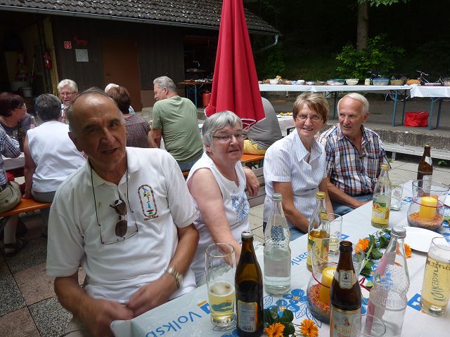 Das tolle Ergebnis der Fußballweltmeisterschaft war ein wesentliches Gesprächsthema an diesem Abend. Der hilfsbereite Hausdienst der Naturfreunde war schon längst auf dem Heimweg, da wurde immer noch mit einem Viertle auf diesen Abschluss des Halbjahresprogramm angestoßen.