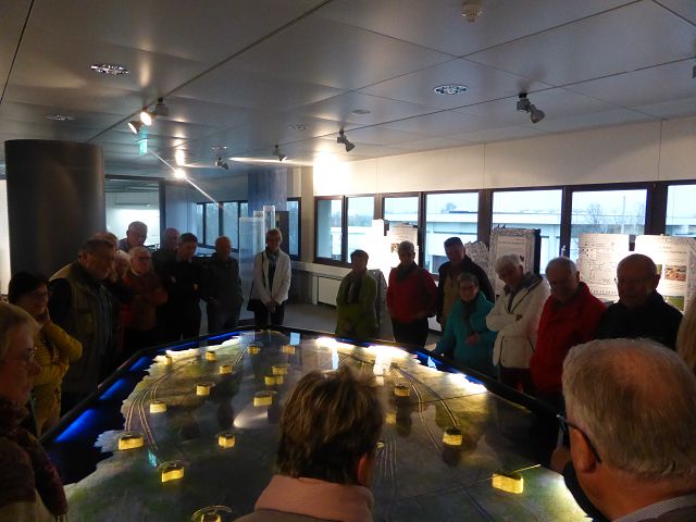 Eine große Teilnehmerzahl des Jahrgangs 44/45 besuchte die spannende Ausstellung „Erlebniswelt Grundwasser“ bei der Landeswasserversorgung in Langenau. Dieses Unternehmen versorgt heute rund 250 Städte und Gemeinden zuverlässig und sicher mit Trinkwasser. Hervorragend zeigt diese Ausstellung an Hand von Schautafeln und Modellen den vielseitigen Weg des Grundwassers. Denn nur ein Teil des Regens oder Schnee wird zu Grundwasser. Dann beginnt eine Zeitreise in den Tiefen der Erde. Verschiedene Gesteinsschichten speichern dabei das Wasser unterschiedlich. Die Gruppe wurde von einer exzellenten Fachfrau betreut. Von ihr war viel Wissenswertes zu erfahren, angefangen von der Wassernot auf der Schwäb. Alb vor rund 150 Jahren bis hin zu der Feststellung, dass heute rund 60 Prozent der Bevölkerung Baden-Württembergs ihr Trinkwasser aus dem Grundwasser beziehen. Weitere Themen wie Grundwassergefährdung, Brunnenbau, Überwachungssysteme wurden beim Zweistündigen Rundgang aufgezeigt und diskutiert. Beeindruckt waren alle Teilnehmer von diesen vielseitigen Informationen zum Thema Grundwasser, die abschließend auch so zu beschrieben sind: Unsichtbar und geheimnisvoll – das Wasser im Untergrund – ein kostbarer Schatz, er will gehütet sein.
