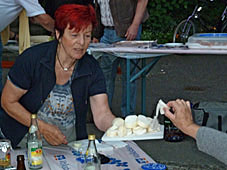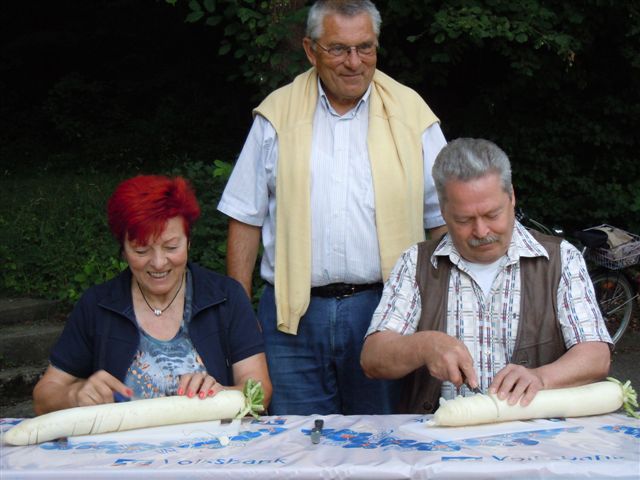 Wer fertigt die längste „Radiziehharmonika". Dazu gab es ein spannendes Wettschneiden zwischen Renate Bauriedl und Peter Mohr.