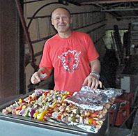 Grillmeister Jürgen zeigt sich von seiner besten Seite. Es ist schon erstaunlich, was er so alles, bestens abgestimmt, auf dem traditionellen Jahrgangsspieß unterbringt. Ebenso waren die feinen Lachssteaks raffiniert zubereitet und fanden sehr schnell ihre Abnehmer.