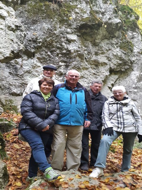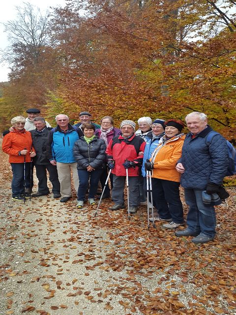 Jahrgängler wanderten durch einen bunt gefärbten Herbstwald zunächst in Richtung