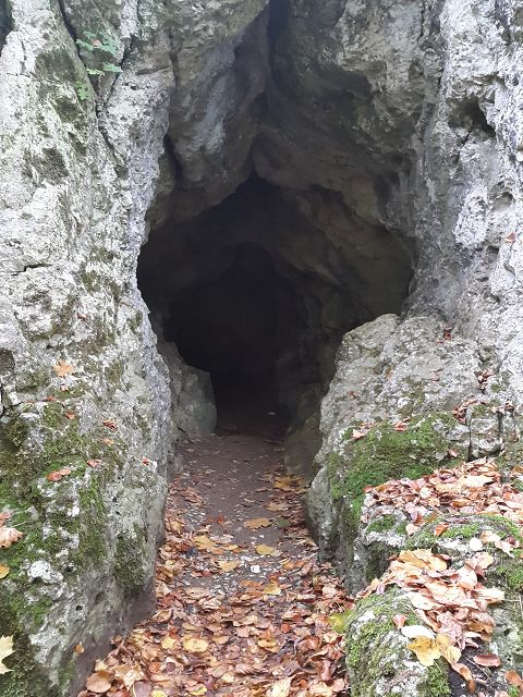 Die Höhle ist eine 36m lange Spalthöhle, die horizontal in das dortige